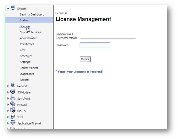3b) You can also go to System | Licenses | License renew (below the Synchronize button). If you click on this link, then it redirects you as well to the mySonicWall account . You should see here a Login Page as well