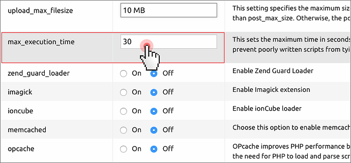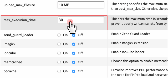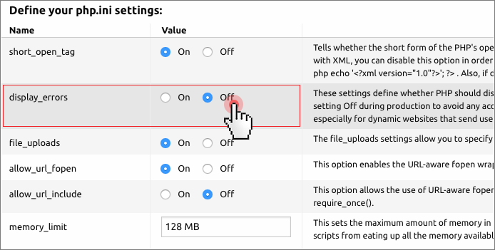 Some of the settings may not be modified – due to security measures set by the hosting provider.