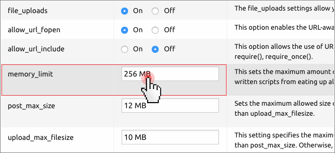 In the Hepsia Control Panel, you can set the maximum amount of memory with a click of the mouse: