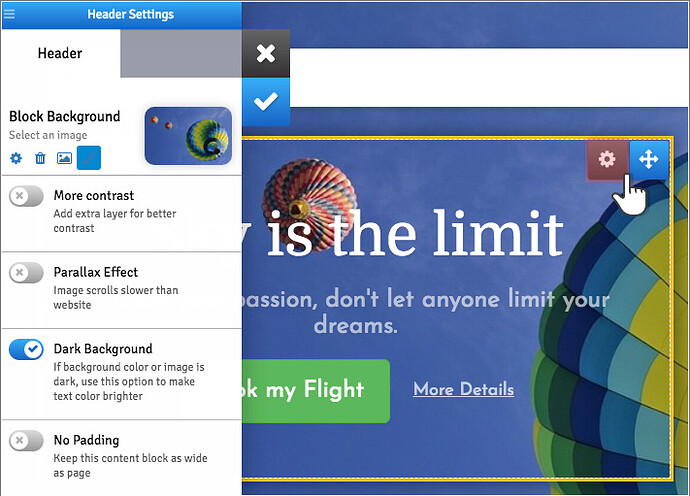 You just need to move your mouse over the content block you want to edit and a handy toolbar will show up with the key editing features such as: