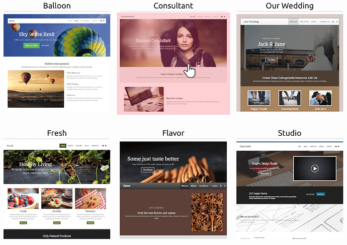 The Website Builder offers a wide selection of fully responsive website themes to choose from: