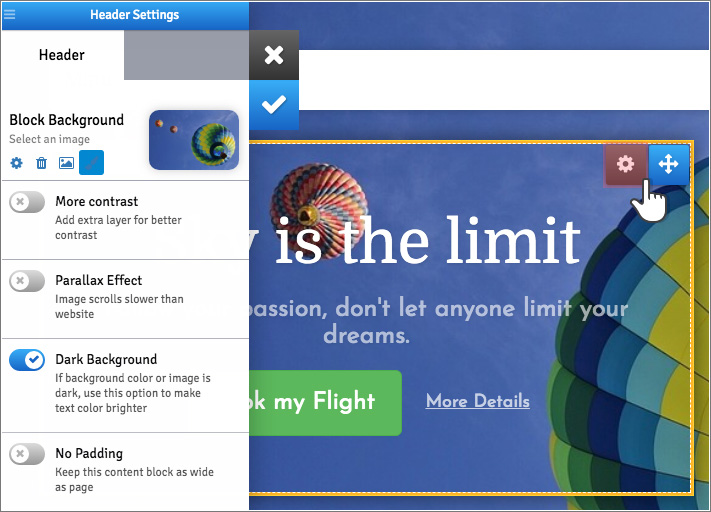 The Website Builder offers easy-to-work-with content blocks for paragraphs, headers, features and more.