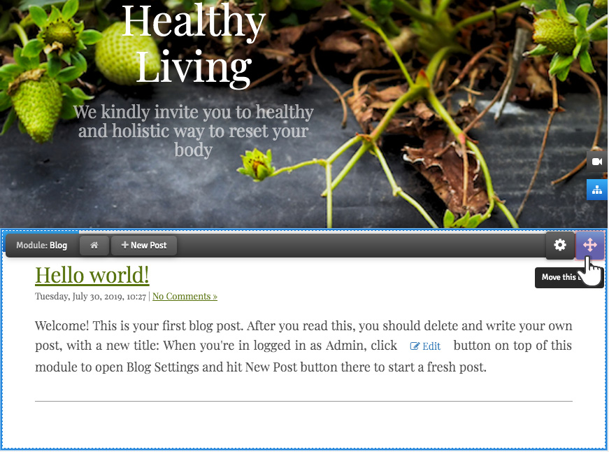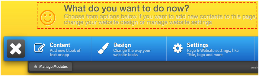 You will see the core contents of a website such as a menu bar, banner area, text areas, etc. organized in easy-to-work-with modules (content blocks).