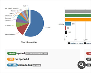 See results of every campaign and autoresponders in a beautifully formatted report. Visualize opens, clicks, bounces, complaints and countries with charts & data. You can export segments of subscribers from your report for re-targetting.