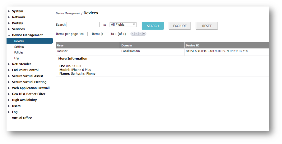 - Locate the new iOS device ID by navigating to Device Management | Devices and searching for the user. Copy the new device ID: