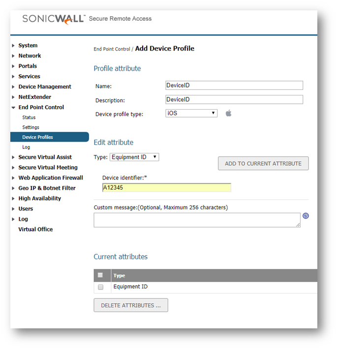 - Navigate to End Point Control | Device Profiles . Remove the old device ID (our example is A12345) and paste in the new device ID as seen above: